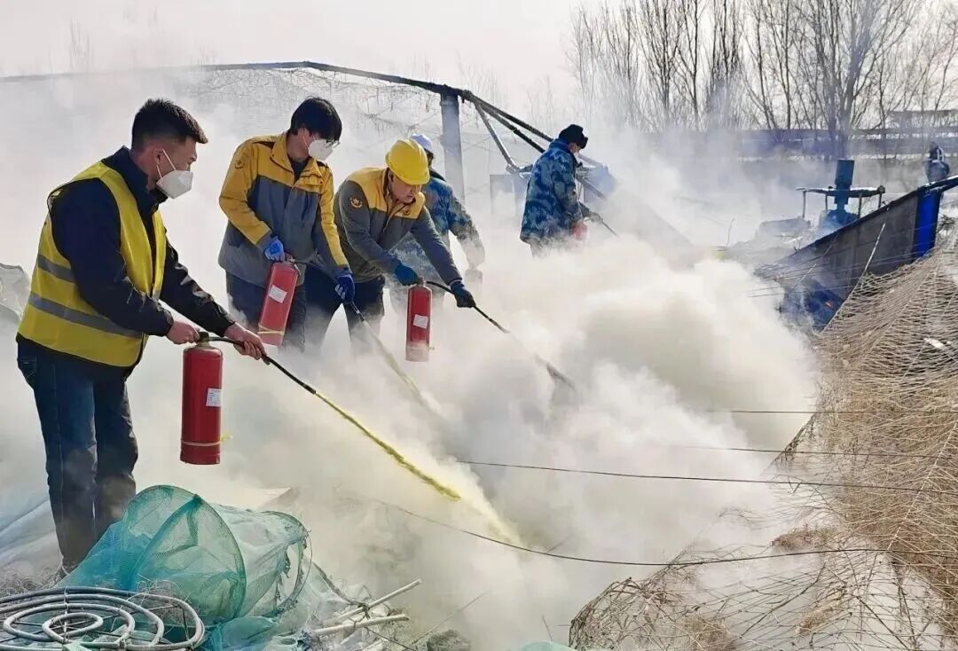 与当事人联系确认现场断电后,应急小组迅速组织扑救。因道路受限,微型消防车无法直接进入现场,应急小组成员遂携带灭火器徒步进入火场,有效控制住了火势蔓延。13时48分,盘山县消防救援大队抵达现场,应急小组完成交接后转为待命。14时15分,火势全部扑灭。